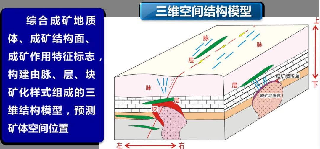 二是围绕深部找矿预测需求,开展矿集区及老矿山“三位一体”(成矿地质体、成矿构造和成矿结构面、成矿作用特征标志)找矿预测理论与方法创新与示范,主要包括:1)成矿构造与成矿结构面研究方法与模式建立;2)开展矿床深部定量预测理论与方法研究;3)基于2DGIS/3D建模平台构建矿集区“成矿地质体-成矿构造与成矿结构面-成矿作用特征标志”找矿预测模型。