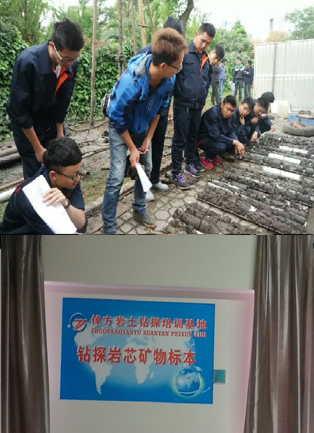 云南钻探培训基地是旨在解决目前工程地质勘探钻探技术工人短缺的问题,培养懂技术、懂专业、懂工艺的新型钻探技术工人,服务于建设主管部门进行职业技能考试考试的机构,是未来生产钻探高质量产品的设计者及制造者。我们把钻探服务作为我们的产品,把奉献出高质量的勘探技术水平和高质量的勘探成果作为我们的工作目标。云南钻探培训基地是由云南建设主管部门和地方政府支持,倬方岩土与云南职业院校合作建设的培训考核机构。2014年9月倬方岩土与禄丰职业学校开始联合创办“倬方岩土钻探班”,已培养两批钻探技术工人。由倬方岩土派出技术专家、高级技师、院校导师到钻探班和基地授课教学,提升钻探技术工人的综合素质。云南钻探培训基地配置有公司会议培训教室、职校电子授课教室、钻探实训教室、钻探岩芯标本展示馆和机器操作实践场地。钻探实训教室为今年建设投入使用的6层实训楼,底层9.6米高,设有6台钻机上机操作考核平台。上机操作平台设置规范,从钻机操作规程、安全规程、岩芯装箱、岩芯取样、回次分层标签、原位测试操作规程等全方面的展示和考核。是国内第一家专业设置规范化、标准化钻探上机操作实训和考核操作平台的培训机构。