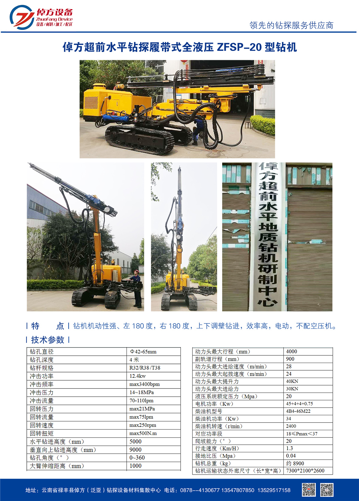 【倬方设备】倬方超前水平钻探履带式全液压ZFSP-20型钻机