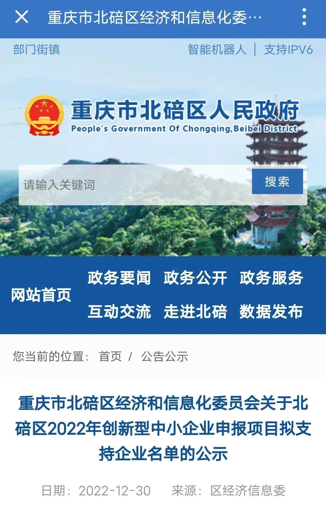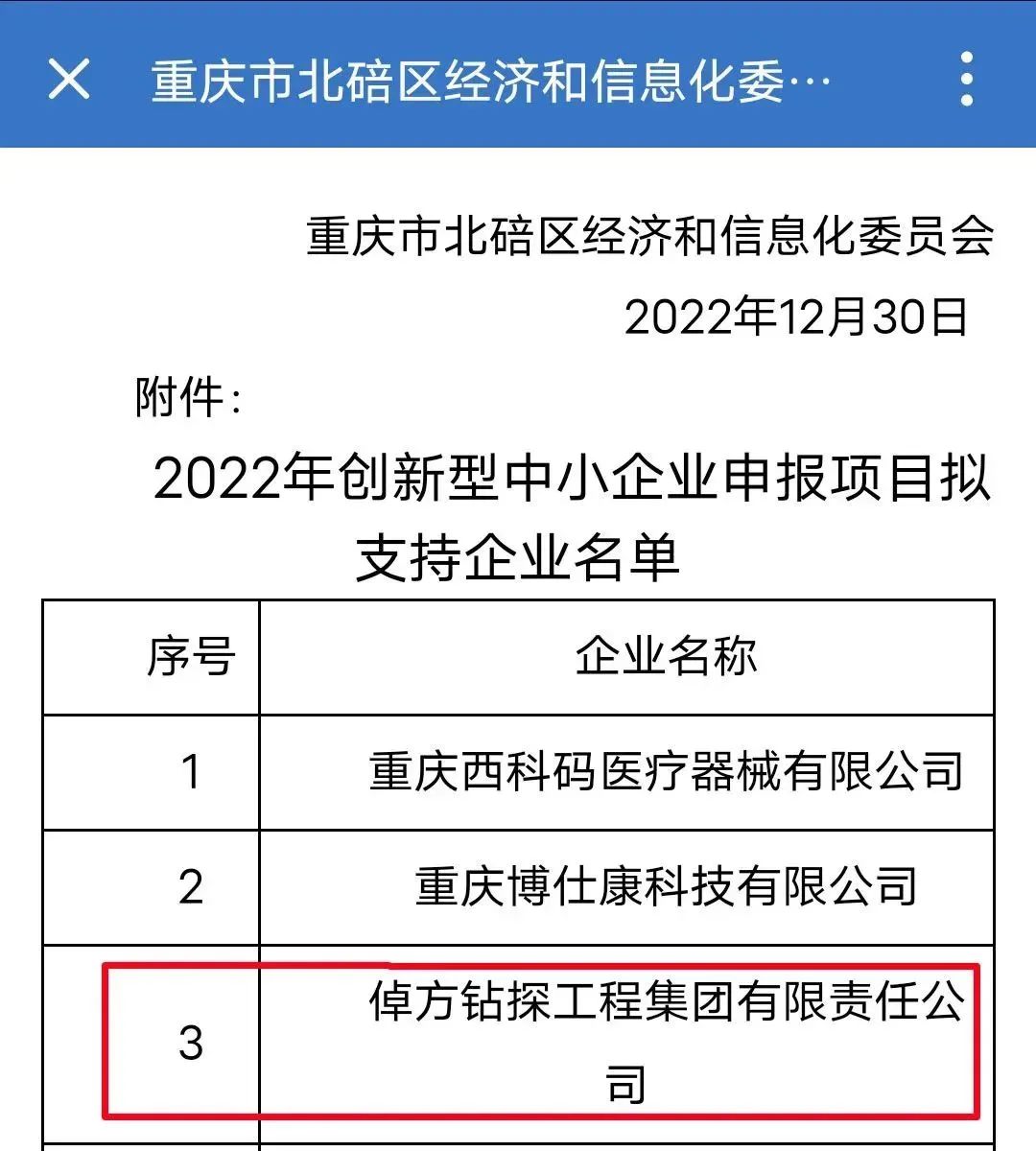 祝贺倬方钻探集团被认定为2022年重庆市北碚区创新型中小企业